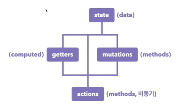 actions는 state, getters, mutations에서 가져와서 다 활용할 수 있습니다.