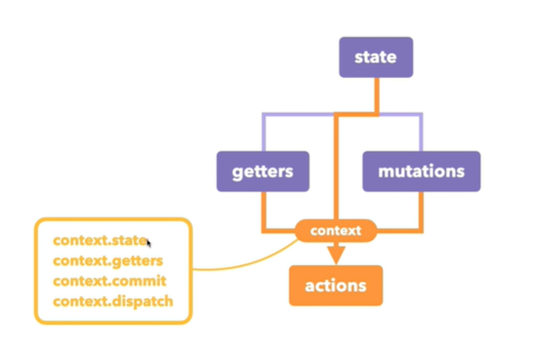 사용하는 방법이 바로 context.state, context.getters, context.commit, context.dispatch를 사용해서 활용할 수 있습니다.