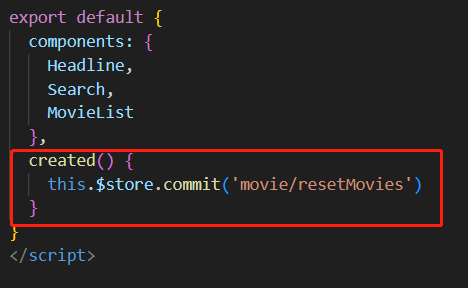 페이지를 들어갈 때마다(created), 방금 resetMovies 메소드를 실행합니다.