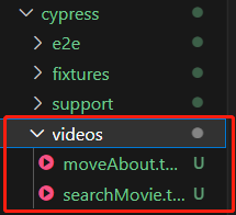 terminal에서 headless모드를 실행한 후 cypress폴더 안에 videos폴더 새로 생성됩니다.
