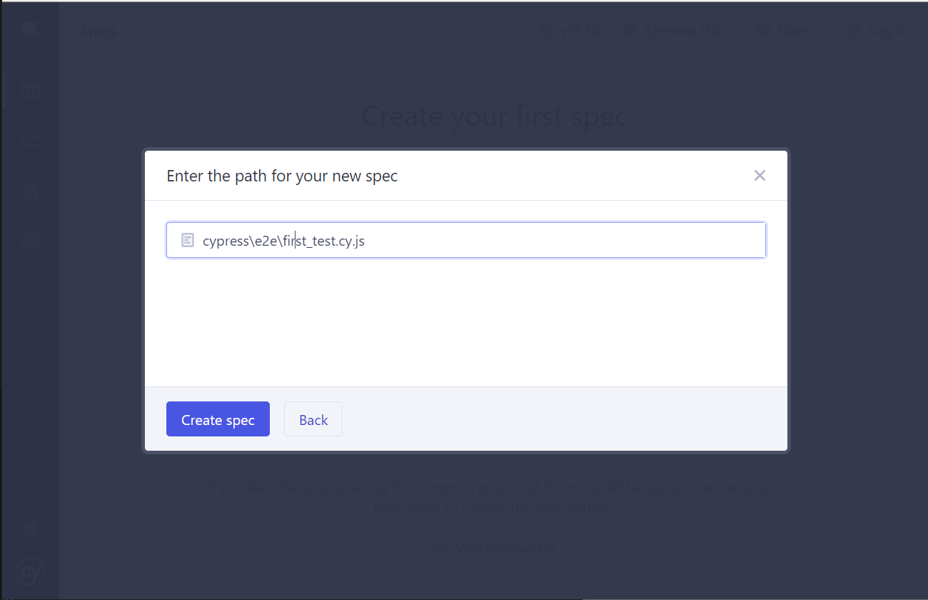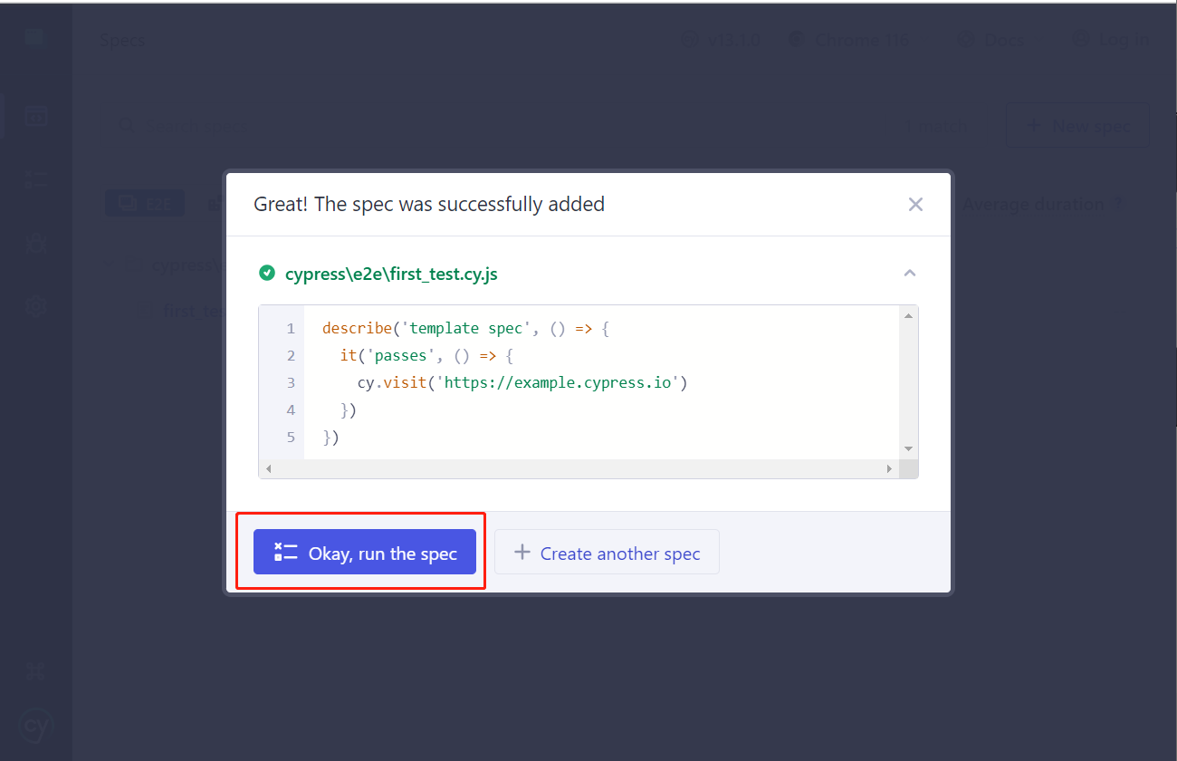 create new spec를 선택한 후, 이름 지어주고, run하면 됩니다.