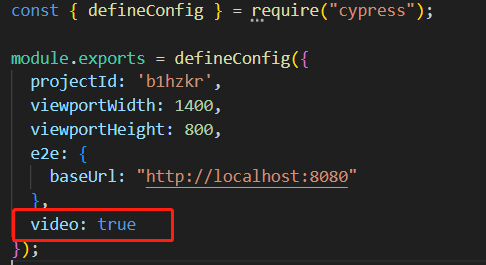 cypress.config.js 옵션에 video:true를 추가합니다.