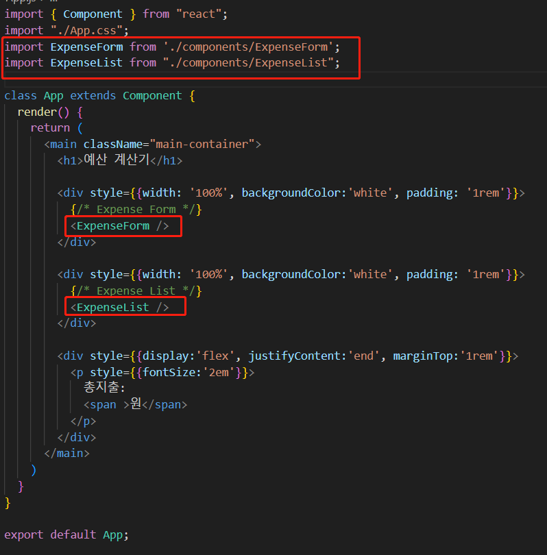 ExpenseForm, ExpenseList컴포넌트를 화면에 연결