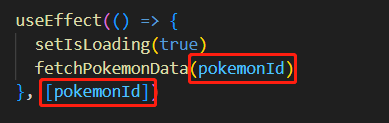 그래서 useEffect에서 pokemonId 값을 넣어서 변경될 때마다 렌더링을 지시했습니다.