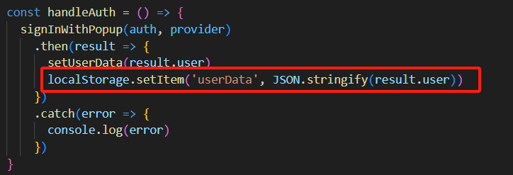 로그인할 때 userData를 localStorage에 저장해줍니다.