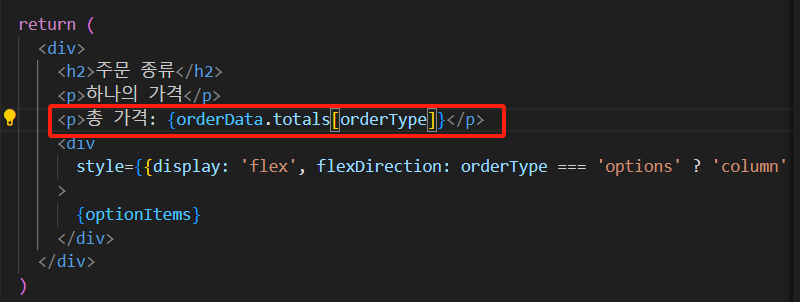 Type.js의 총 가격 부분에 orderData.totals를 반환해줍니다.
