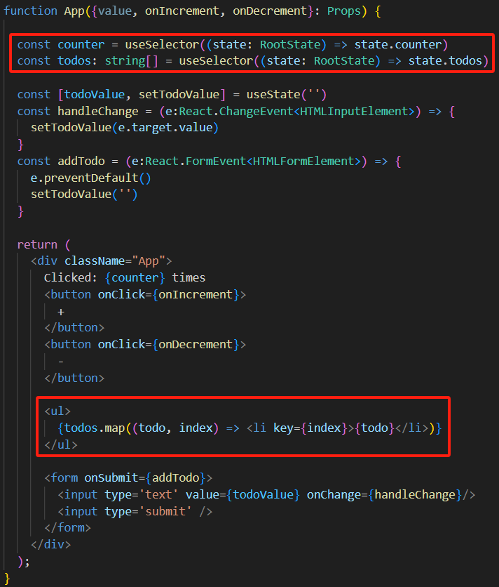 App.tsx중 useDispatch를 정의하고 addTodo함수에 사용합니다.