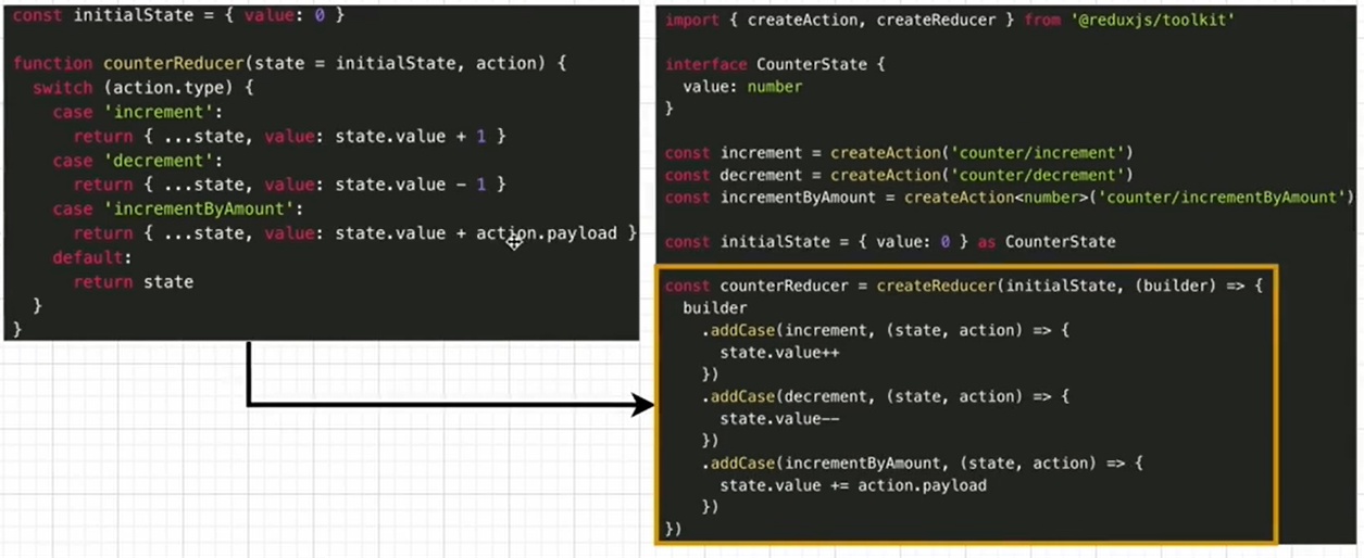 | 기존 redux | toolkit | |