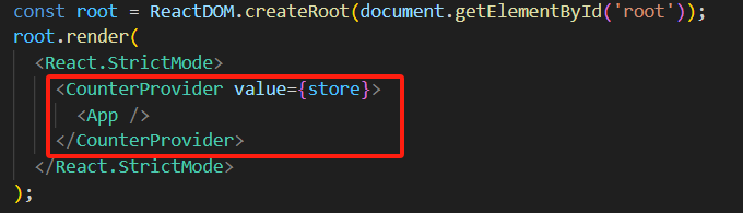 index.js파일 중 CounterProvider로 App를 감싸주며 value에 store값도 부여해줍니다.