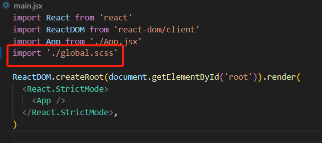 global.scss를 적용하기 위해 main.jsx에 있는 import를 수정합니다.