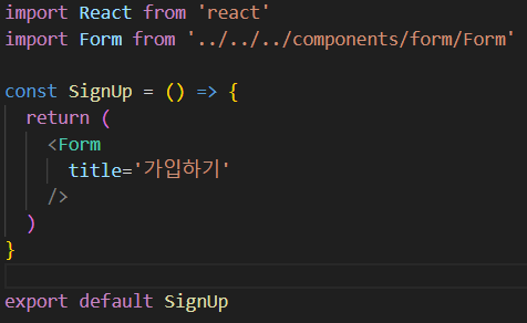 기본 index.jsx이외에 signin과 signup컴포넌트 생성했습니다. 이 둘 컴포넌트는 form을 작성할 예정입니다.