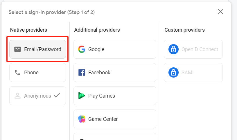 이메일과 비밀번호로 가입할 수 있는 권한을 설정해줍니다.