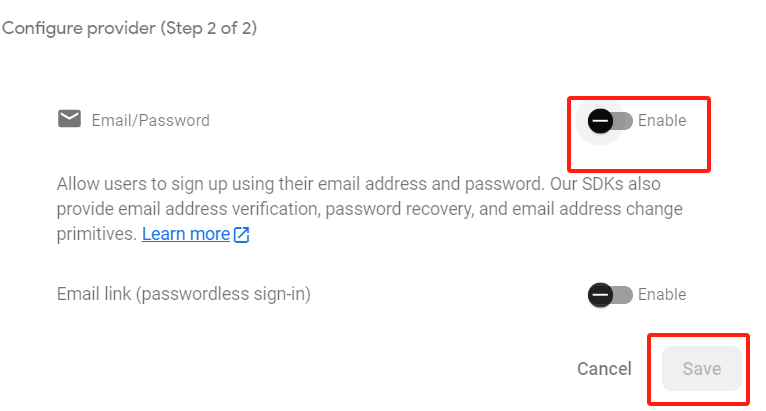 이메일과 비밀번호로 가입할 수 있는 권한을 설정해줍니다.
