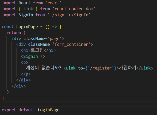 LoginPage 및 RegisterPage의 .jsx파일입니다.