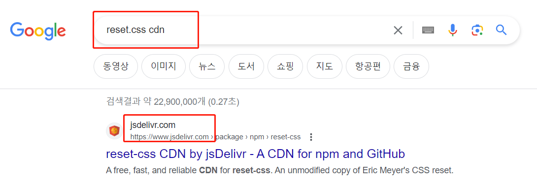 1. 구글 검색창에 reset.css cdn 검색하며,