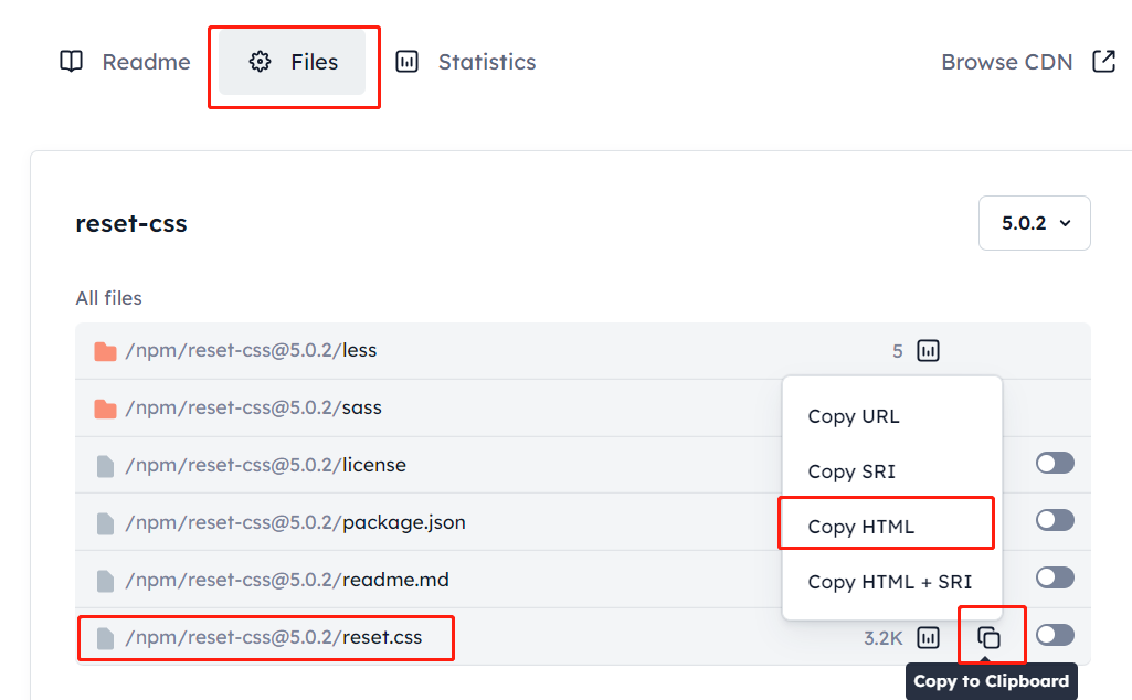 2. reset.css 파일을 확인 후, Copy HTML을 하시고