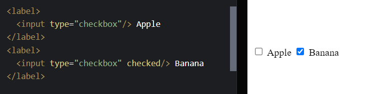 예시처럼 input요소의 타입이 checkbox되고 해당 체크박스의 표시로 Apple이 되어야 한다.