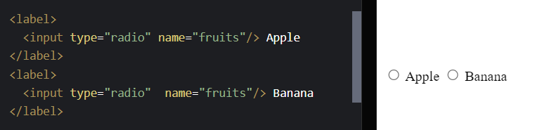 radio 버튼으로 만든 것은 fruits란 이름의 그룹에서 1개만 입력 받을 수 있는 것이다.
