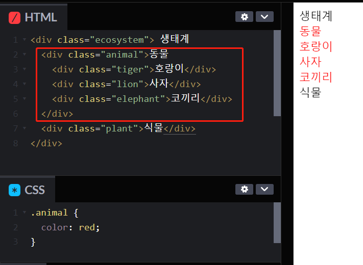부모 혹은 조상 요소로부터 적용된 스타일이 하위요소들로 상속됩니다.