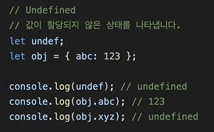 undefined값이 할당되지 않은 상태를 나타내는 자료형입니다.