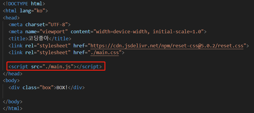위에 예시는 HTML head부분에 js파일을 연결해줬습니다.