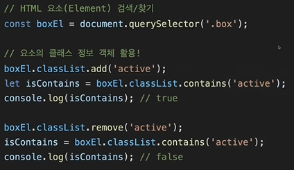 classList 메소드에서 add, remove 클래스를 할 수 있습니다.