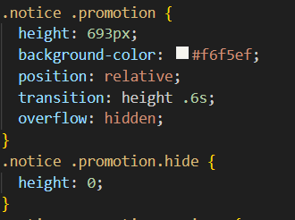 그리고 .promotion.hide에서 높이를 0으로 변경했습니다.