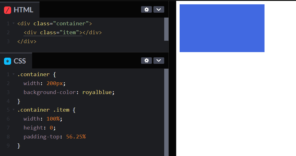 동영상 비율이 흔히 16:9죠. 요소 두개로 간단하게 만드는 방법이 위와 같습니다.
