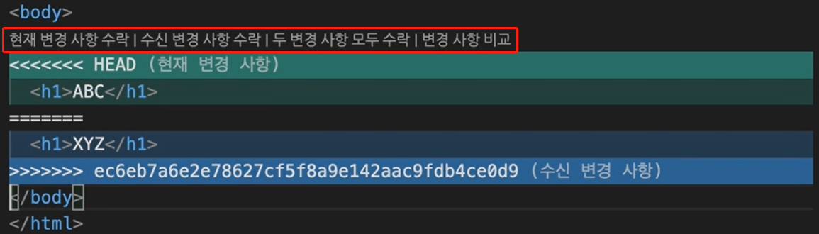 그럼 내용이 각자 다르게 나타나며 충돌(conflict)가 생깁니다.