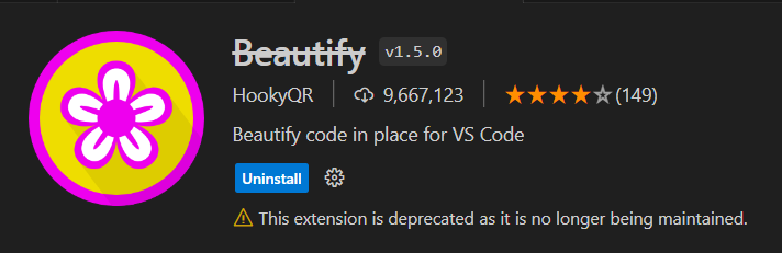 코드들이 들쑥날쑥할 때 Beautify 확장기능을 통해