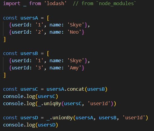 .concat을 사용해서 usersA와 usersB를 합쳤습니다.