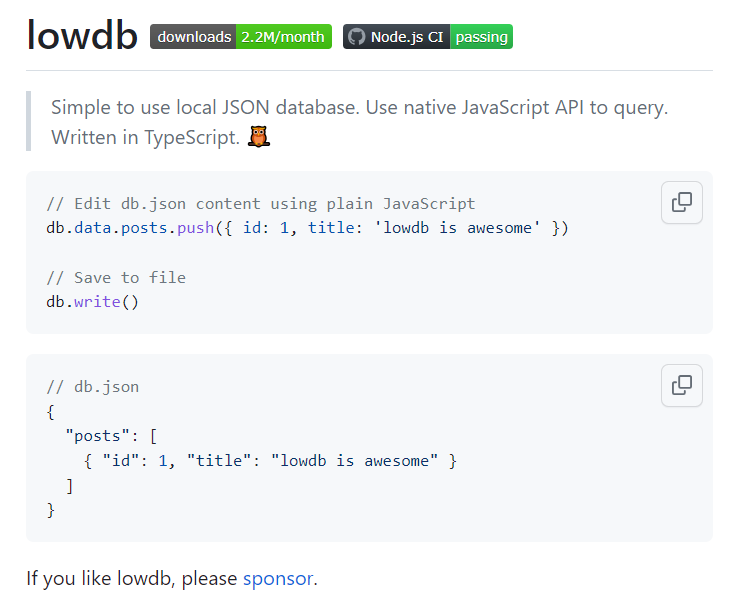 lowdb를 통해 손쉽게 데이터를 수정할 수 있습니다.