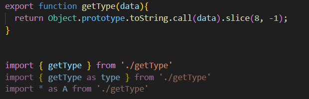 다른 파일에서 불러올 때도 import abc from './getType' 로 해도 상관없습니다.