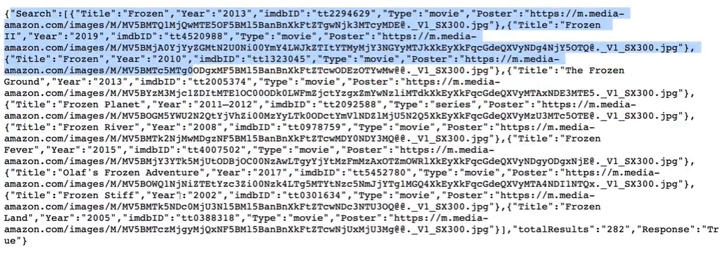 api를 통해 검색한 후 위처럼 JSON으로 반환됩니다.