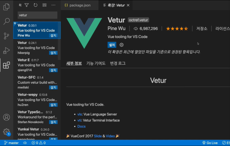 App.vue 파일은 하이라이트가 없어서 Vetur를 설치하면