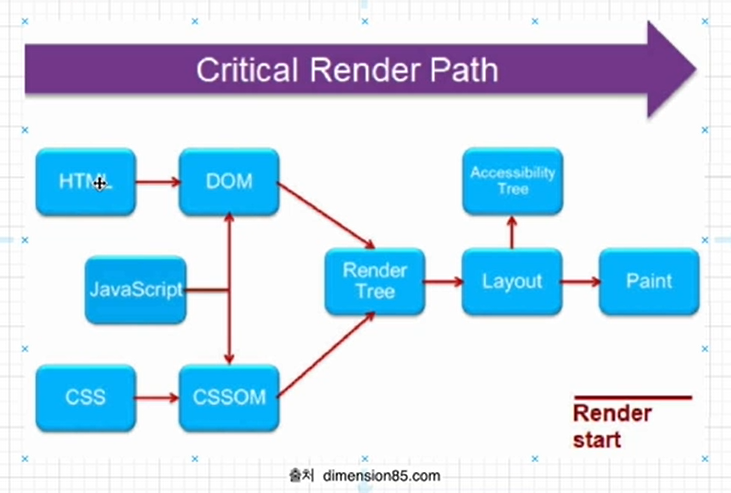 우선, 웹 브라우저가 HTML 문서를 읽고, 스타일 입히고 뷰포트에 표시하는 과정입니다.