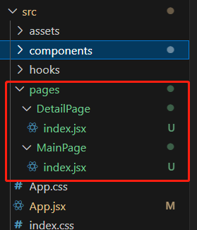 기존 App.jsx파일의 내용은 MainPage폴더의 index.jsx파일에 담겠습니다. import시 경로를 좀 수정해야 합니다.