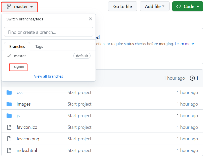 signin branch를 github에 push한 후 signin란 branch가 보이고,