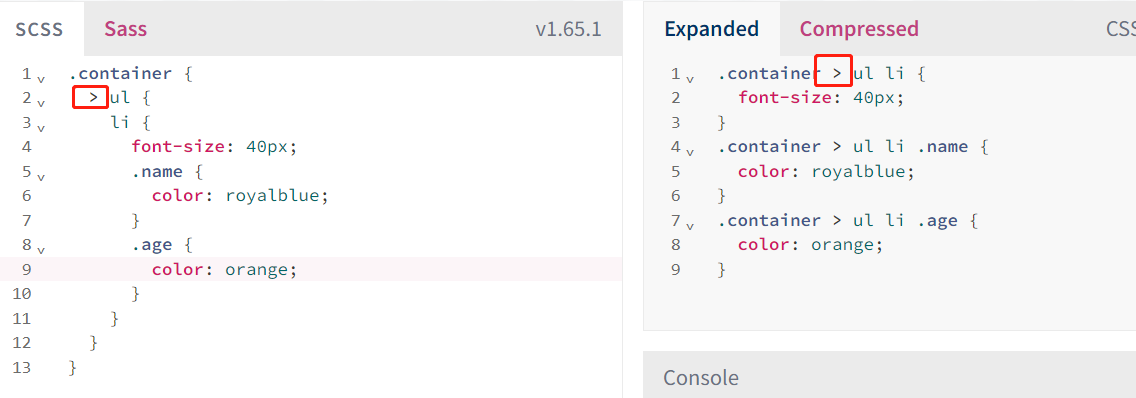 & 를 사용해 상위 선택자를 참조해서 오른쪽 결과가 나왔습니다.